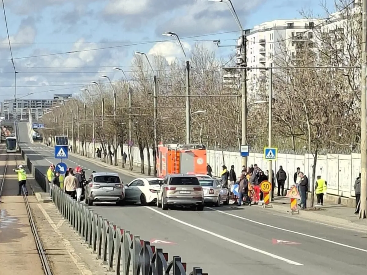 Un accident rutier în care au fost implicate cinci autoturisme și un moped s-a produs vineri după-amiază, 3 aprilie, în Capitală, pe Calea Văcărești.