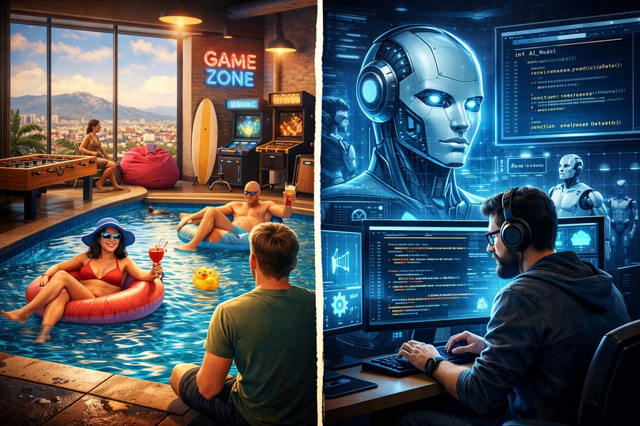 Articolul discuta despre impactul tot mai mare al inteligentei artificiale asupra pietei muncii din domeniul IT din Romania. Se mentioneaza ca pozitiile de "zei" de care se bucurau anterior specialistii IT sunt amenintate, fortandu-i pe unii sa caute locuri de munca la companii concurente, chiar si pentru beneficii precum piscine la birou.Articole despre acest subiect