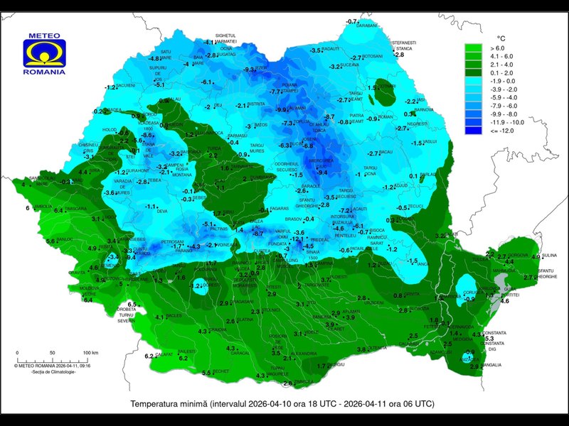 În noaptea de vineri spre sâmbătă, 10-11 aprilie, au fost înregistrate temperaturi negative în majoritatea țării.